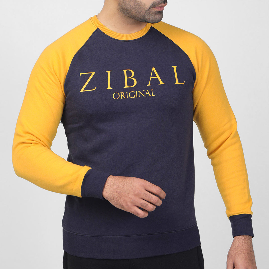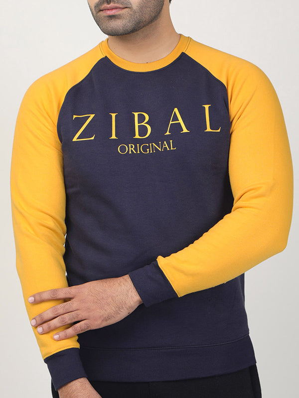 Zibal Navy Sweat Shirt with Yellow Sleeves